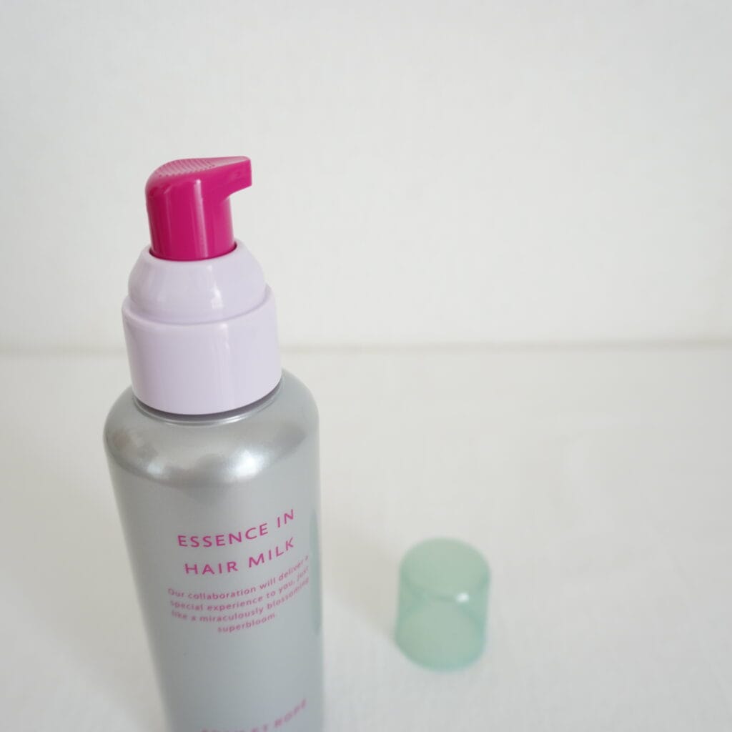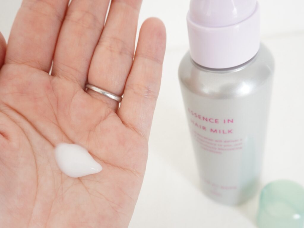 とろんっとしたヘアミルクは、伸びが良くみずみずしいテクスチャーで髪の毛になじみやすい。