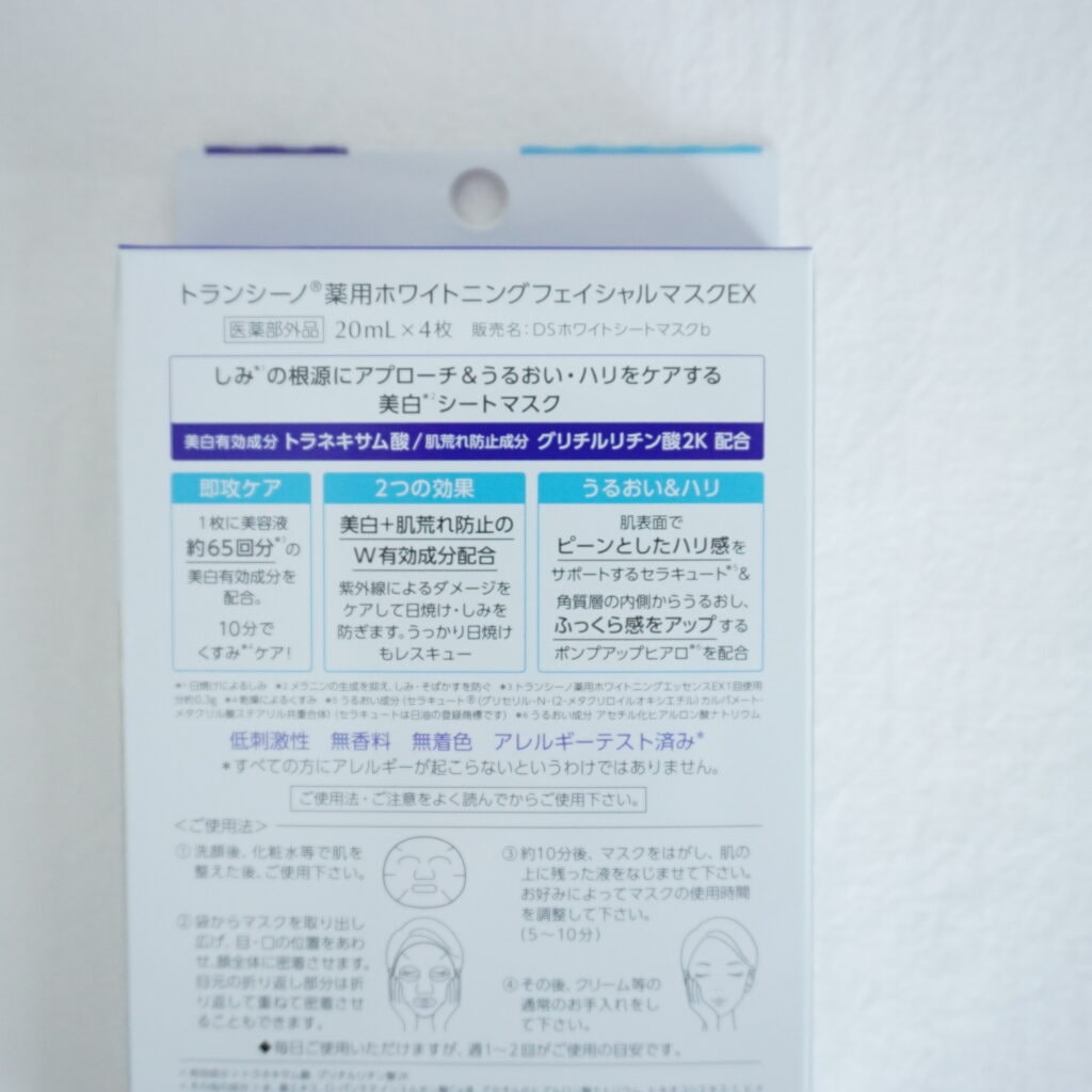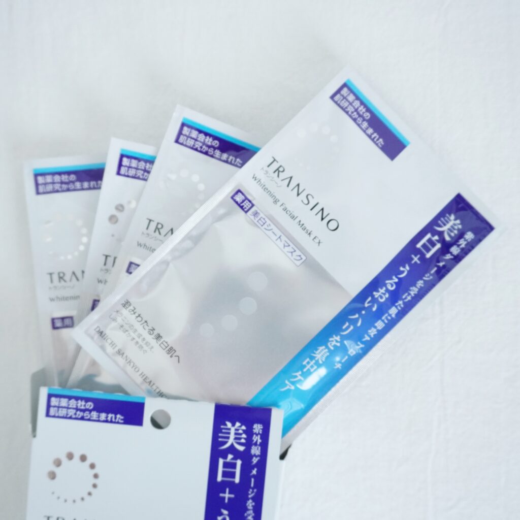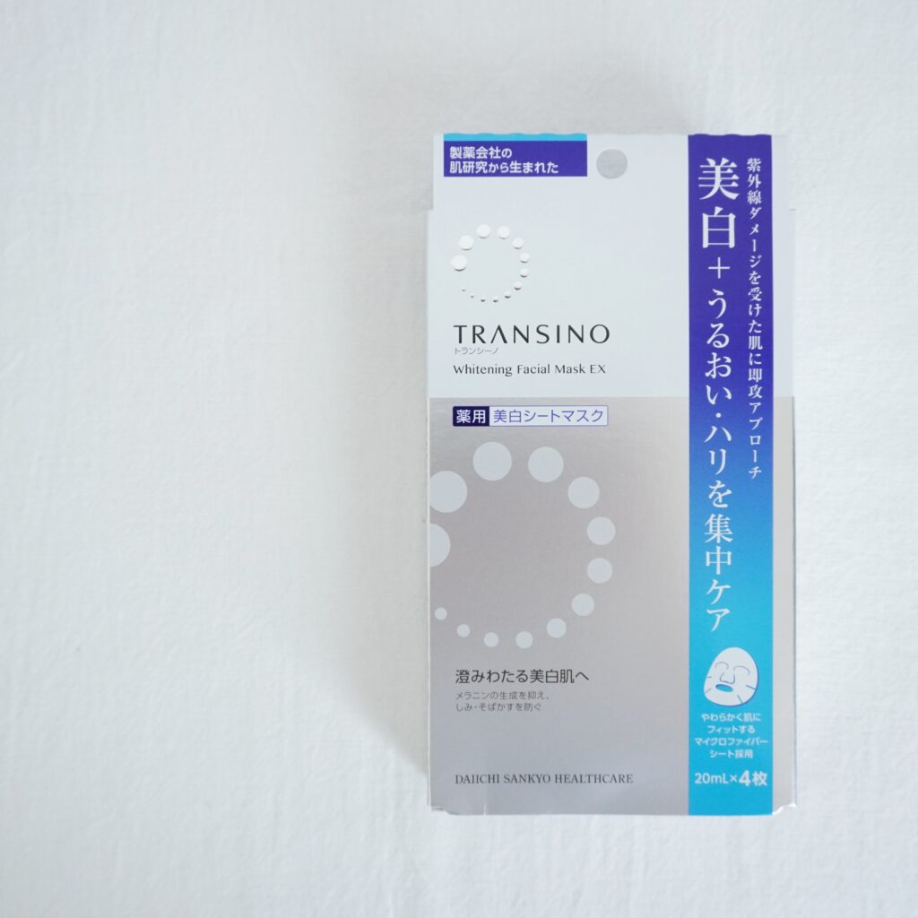 美白シートマスク『トランシーノ薬用ホワイトニングフェイシャルマスクEX』4枚入り。スペシャルケアとして使いたくて常備しています。