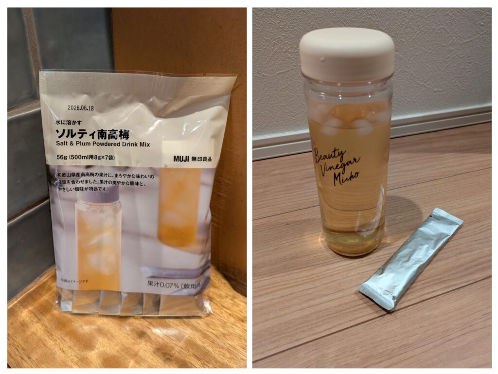 汗をかいたあとの水分補給にも良いかなと思い購入。500mlのマイボトルにぴったりの分量。