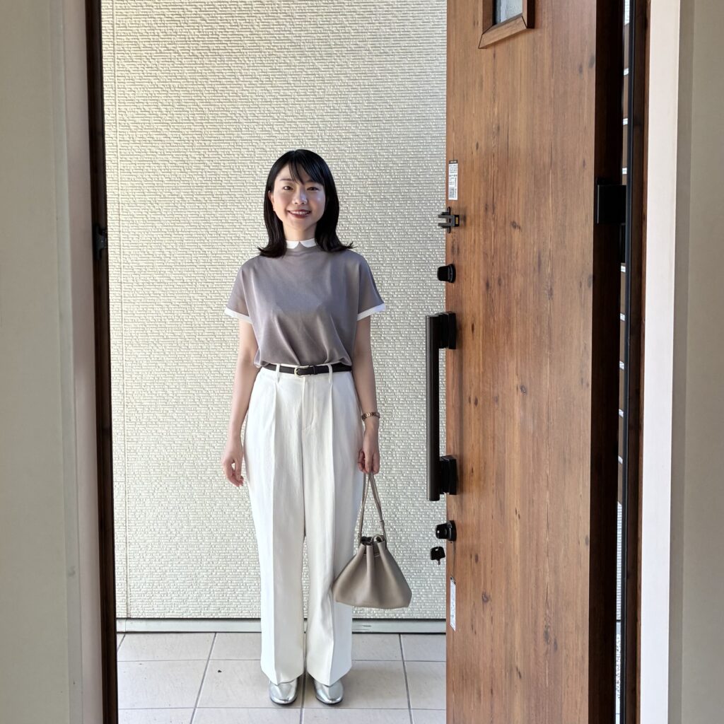 この日は襟の白と合わせて、白パンツにしてみました♡