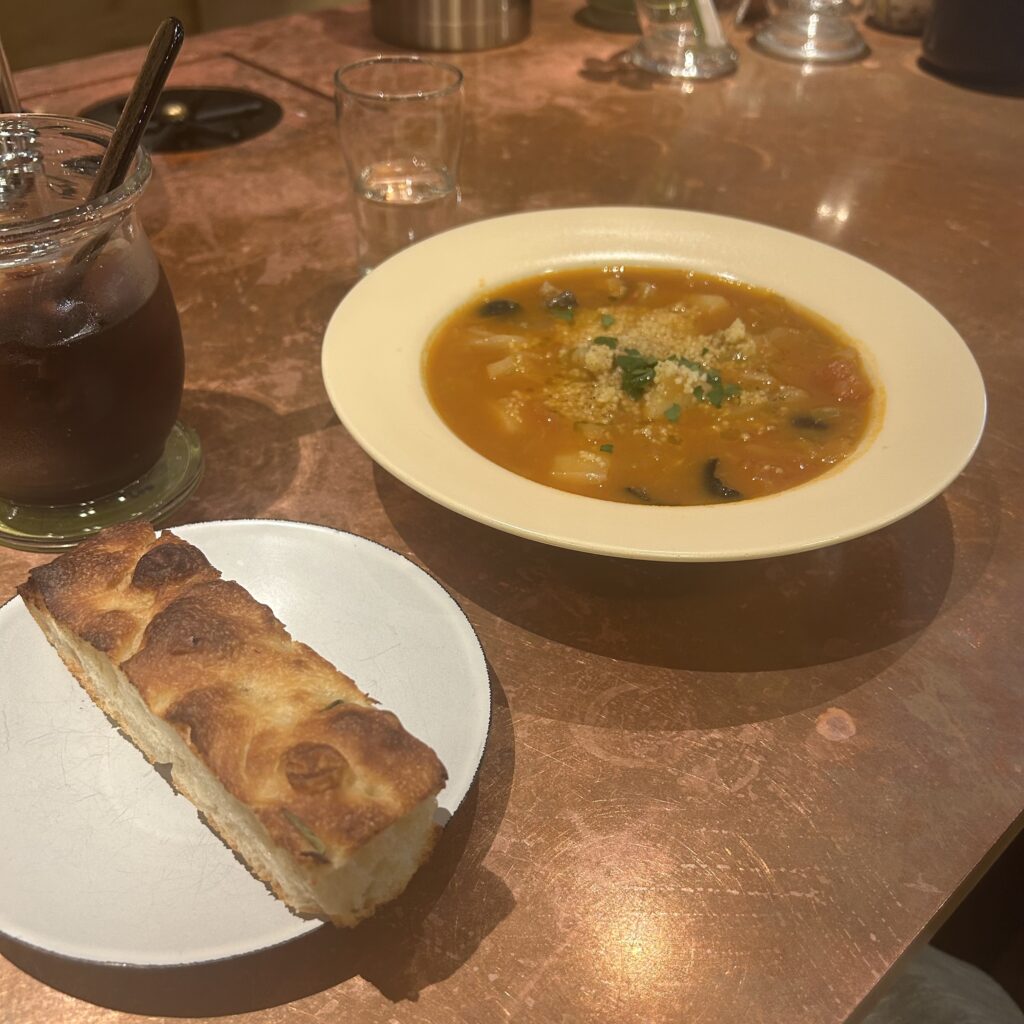 こちらはランチで利用したとき。ブイヤベースにフォカッチャをプラスしました。