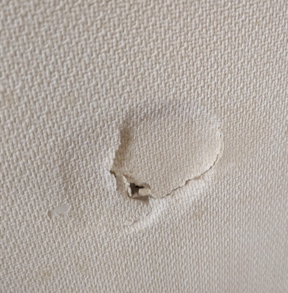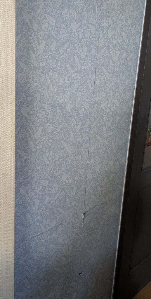 1畳ほどの壁に子ども達が幼い頃はベビーガードをつけており、必要がなくなりはずすとがっつり穴が空いていました