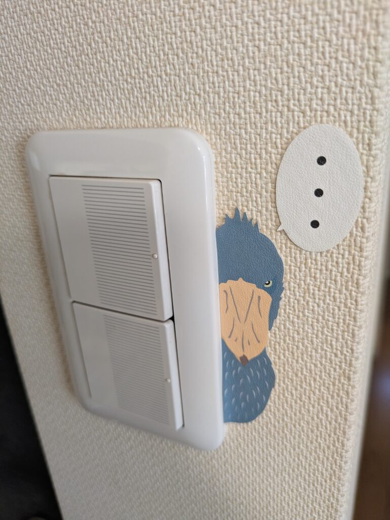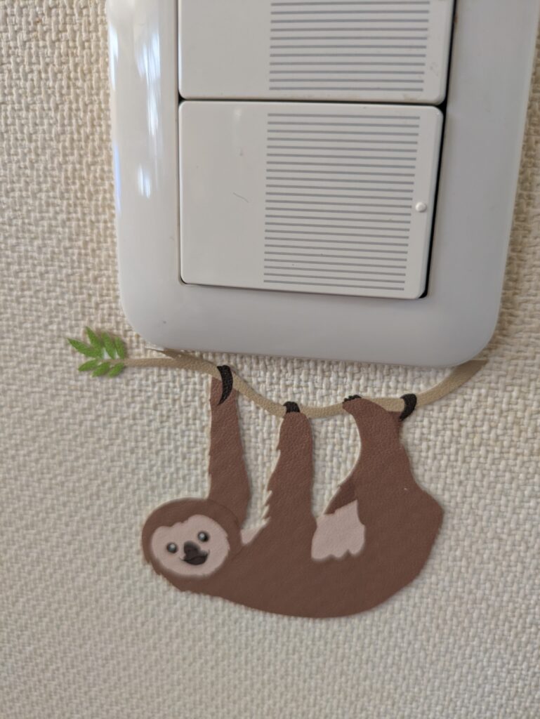 いしかわ動物園のショップで見つけた、ナマケモノとハシビロコウのスイッチシールは、わが家のスイッチをかわいくしてくれています