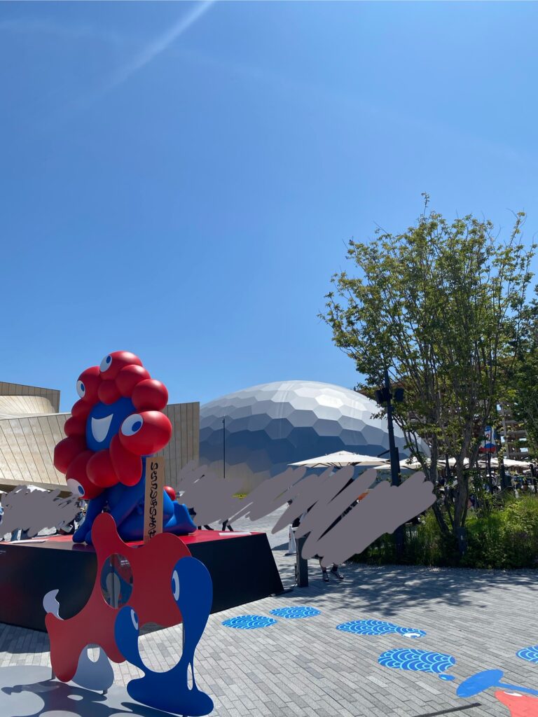 ミャクミャクの発音についてふわふわちゃんと議論しながら入場しました。笑