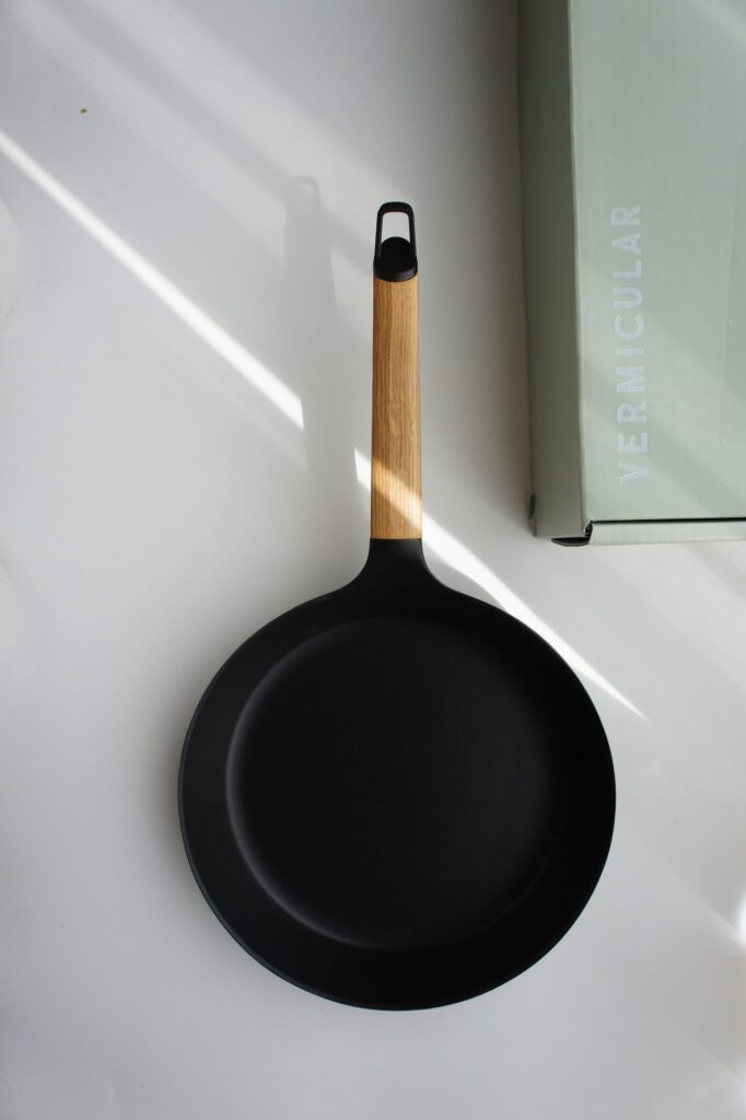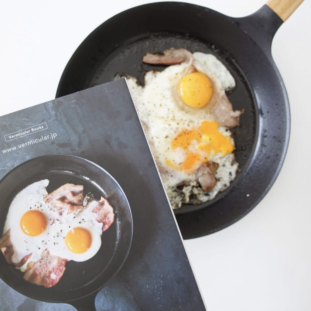 出会ったのは半年ほど前でしたが、色々なメーカーの色々な素材のフライパンも調べて、それでもバーミキュラが一番かな、と思い。購入に至りました。