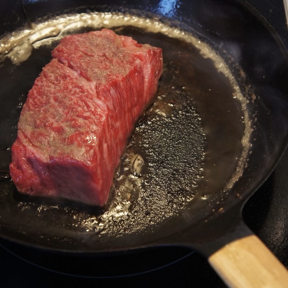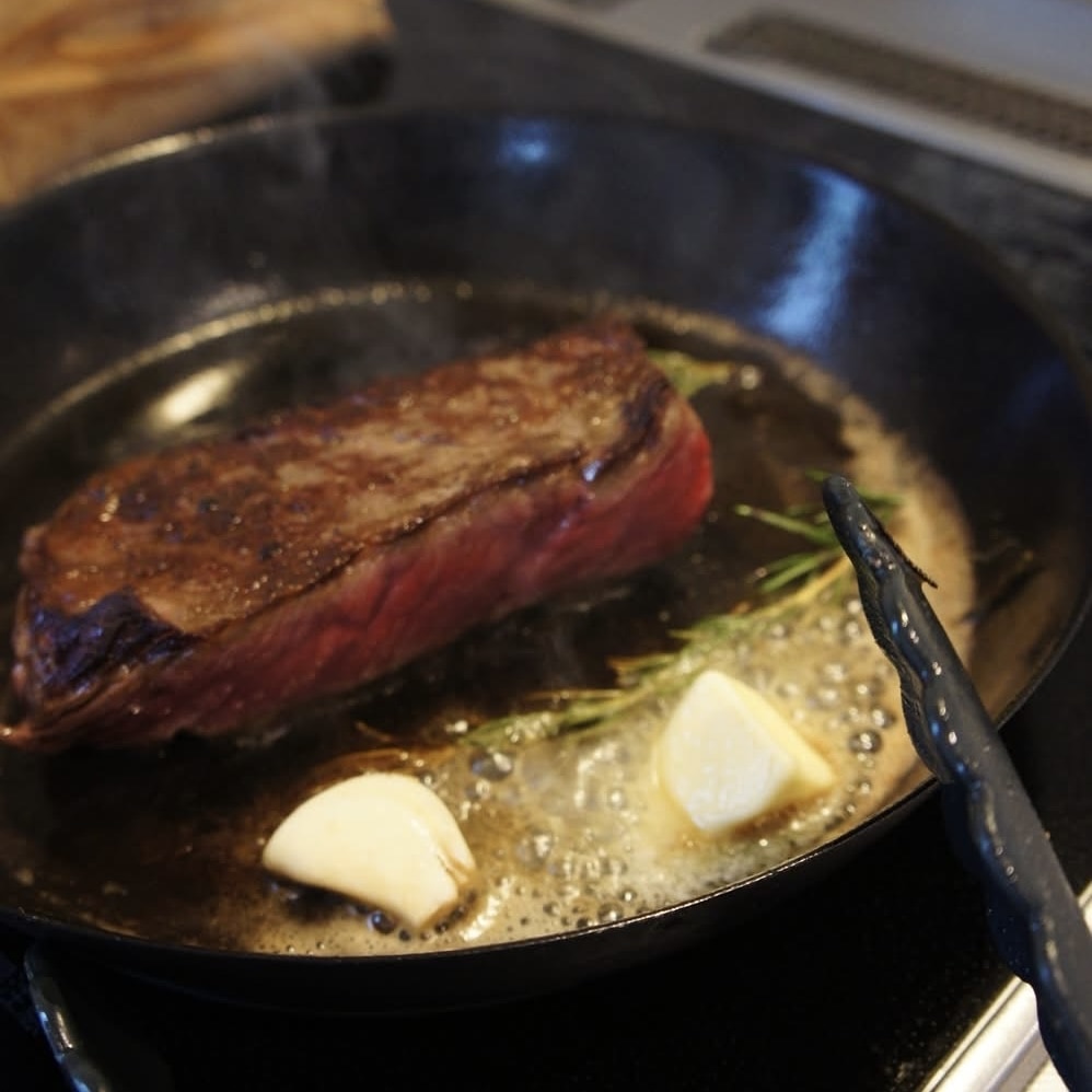 保温性が高く熱伝導率もよいバーミキュラは、外側がかりっと、中はふんわ~な柔らかい食感のステーキが焼けました。