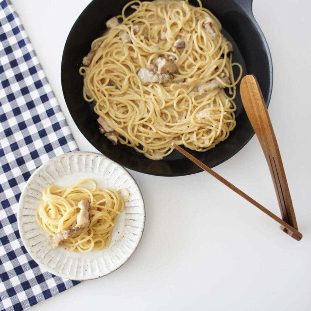 すごく地味な見た目ですが、これ美味しいの!味噌×牛乳×チーズでシンプルに作るんですが、一番美味しいかも!と旦那さんが絶賛する濃厚パスタです。
