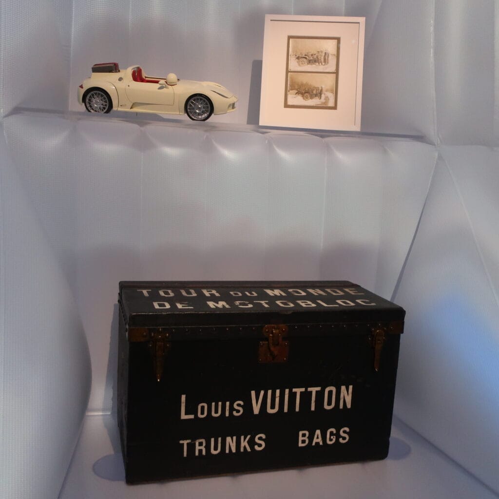 この空間の中心には三つの箱と馬車があったのですが、これは海外に馬車を持って行きたいと顧客から相談を受けた際に作ったものだそう。