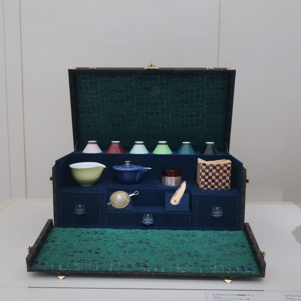 ジャポニスムに着想を得た2代目ジョルジュのモノグラムと家紋の類似性に関する資料展示、黒田家ゆかりの徳川家斉のトランク、着物や友禅染との融合なども展示がありました。