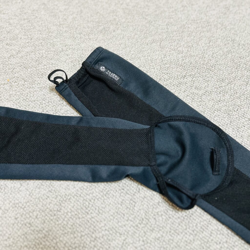 親指と中指をゴムで引っ掛け、更に二の腕の部分もゴムとストッパーで調整できるようになっているので、ずり落ちる心配もありません。