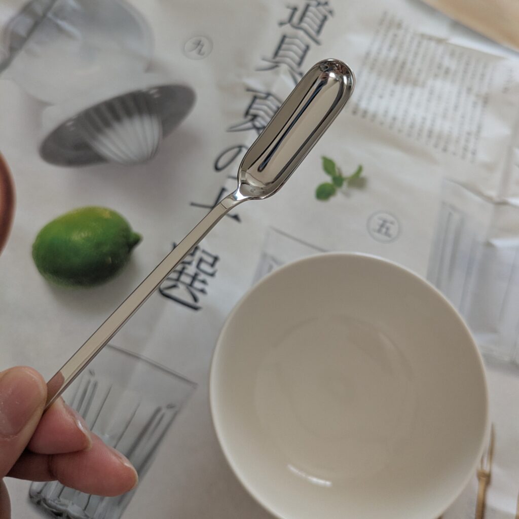 シンプルながらも洗練されたデザインで、細長い形が小瓶にフィットするので便利そう◎はちみつを掬うのにも便利そう◎