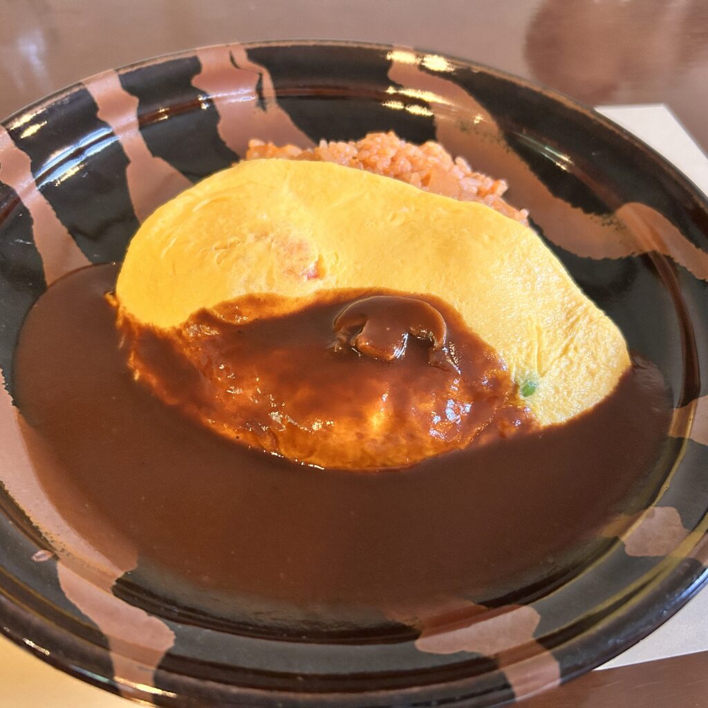 チキンライスにプルプル卵、たっぷりのデミグラスソース。完璧なビジュアルのオムライスです。