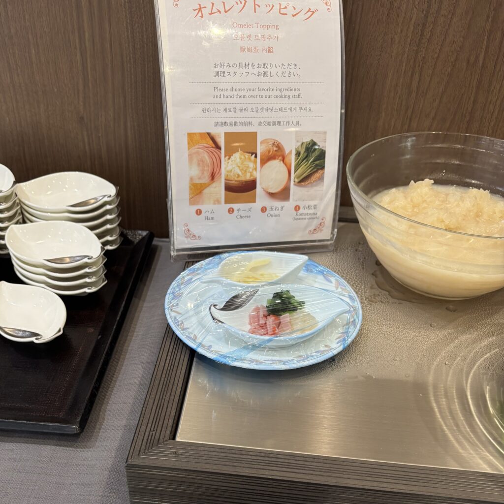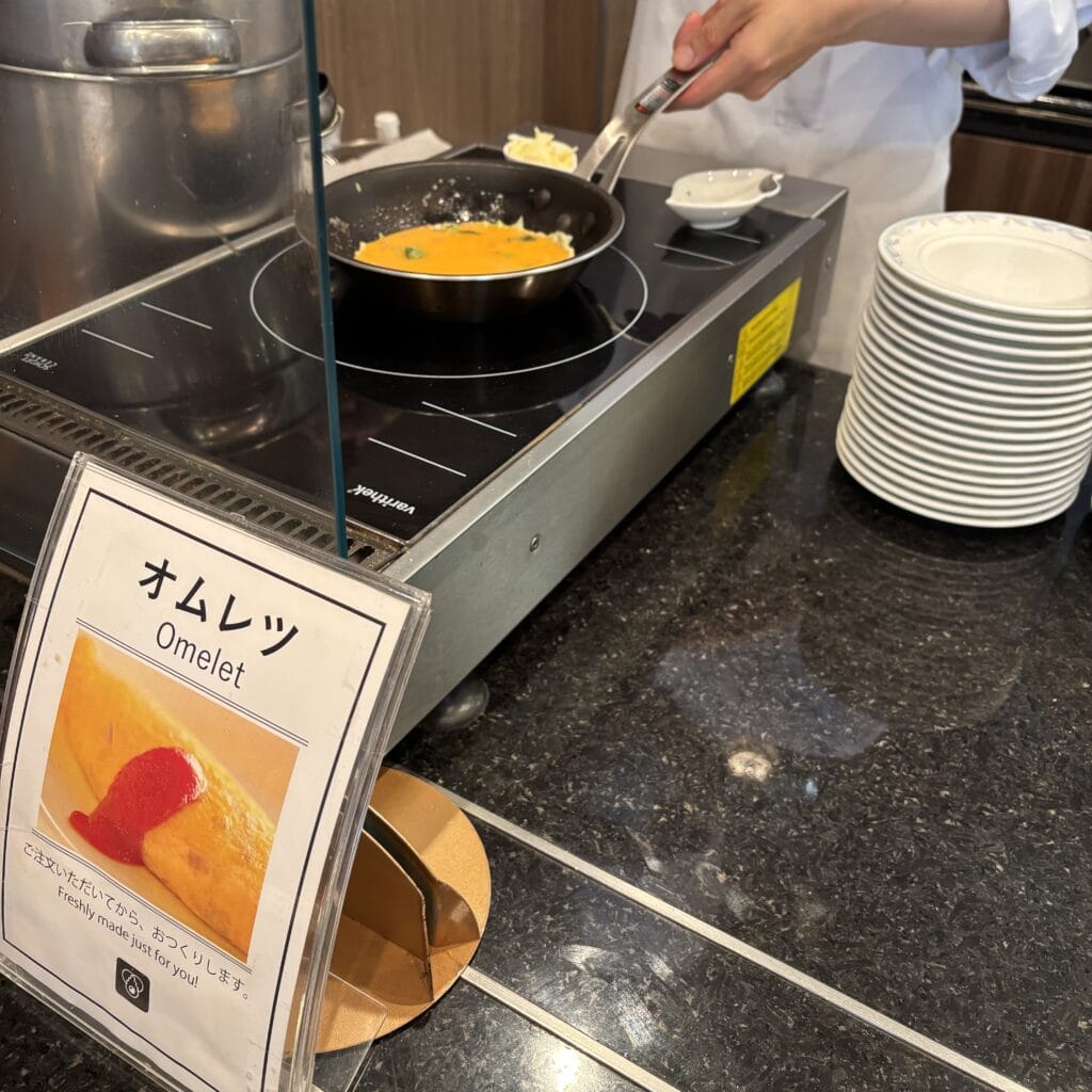 好きなトッピングを選び、シェフが目の前でオムレツを作ってくださるコーナーも。