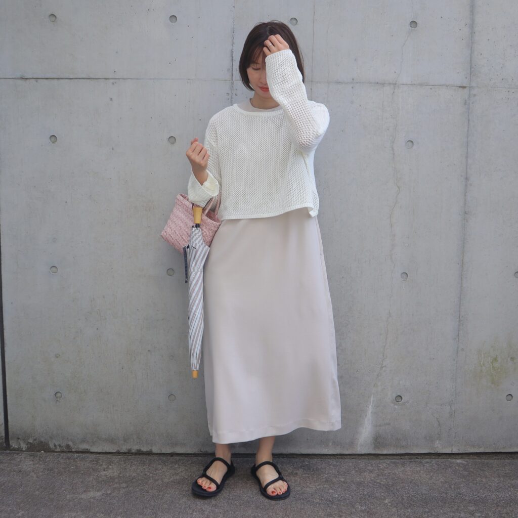 汗ばむ今の時期、肌にまとわりつかず快適に過ごせるのもこのワンピの良さのひとつです。
