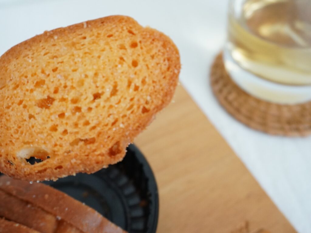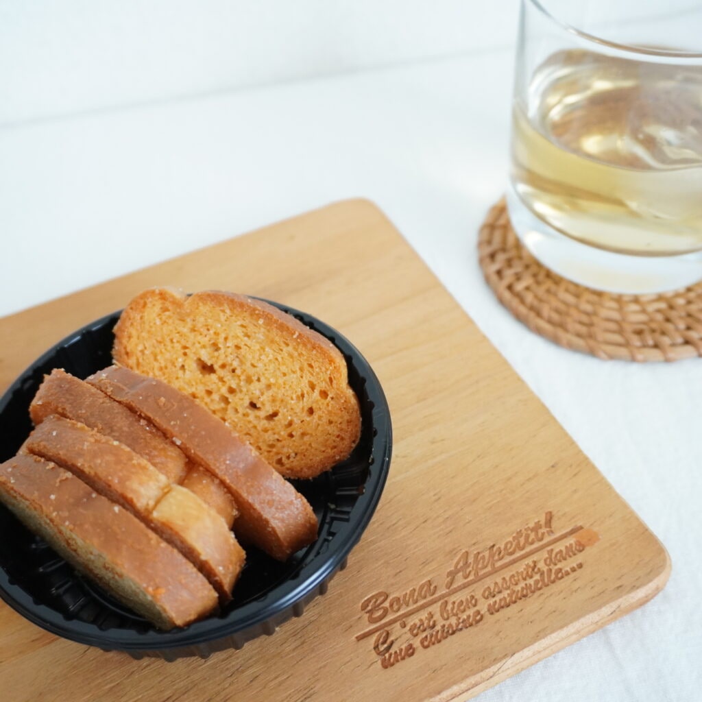 ラスクは丸い容器に入っているので、そのままテーブルに出せるから手軽です〜。パッと出してパッと食べれちゃう。