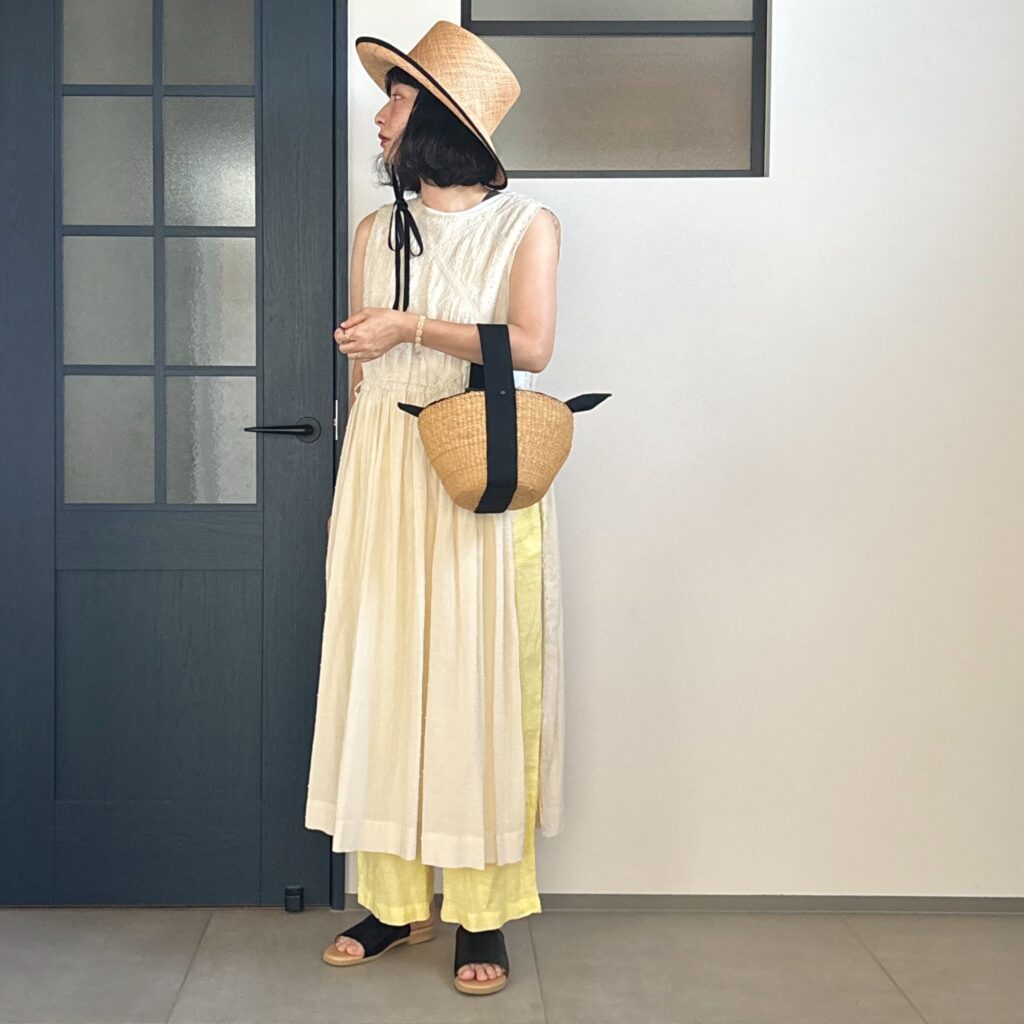 カラー展開はこちらのキナリとクロの2色あり、2色買いしたいほど迷ったのですが、春夏らしいキナリを購入しました。(7月30日現在、どちらのカラーも売り切れです)