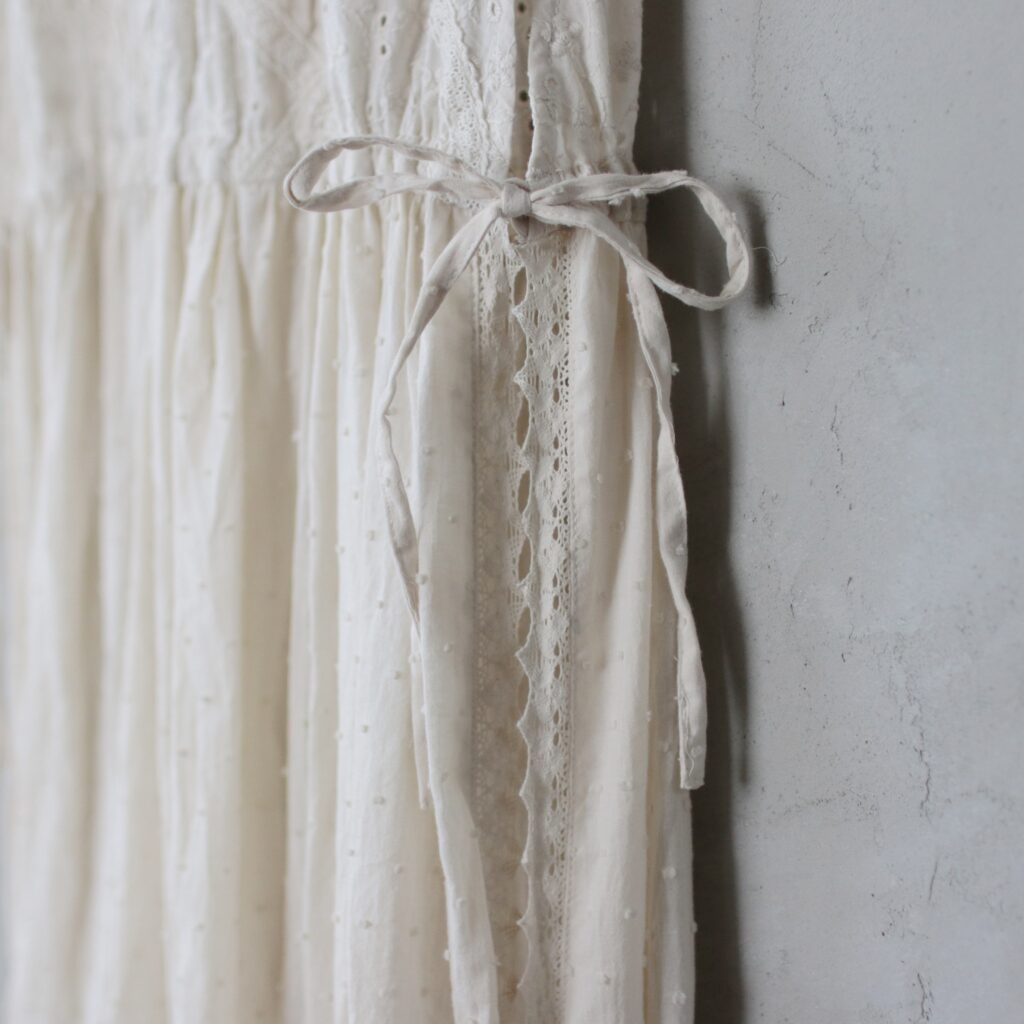 ウエストに通っている紐は、インに着るもののサイズ感に合わせて調整ができます。両サイドでリボン結びするんですよ…可愛過ぎます〜