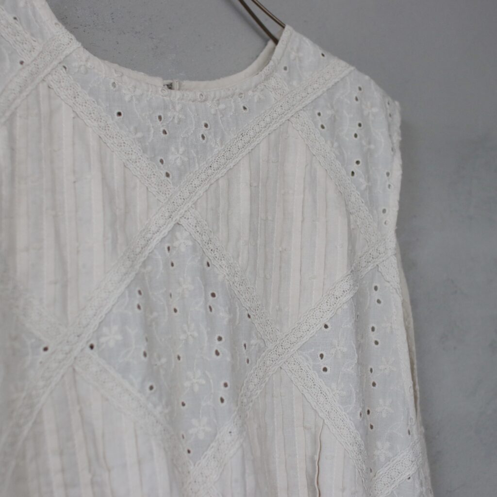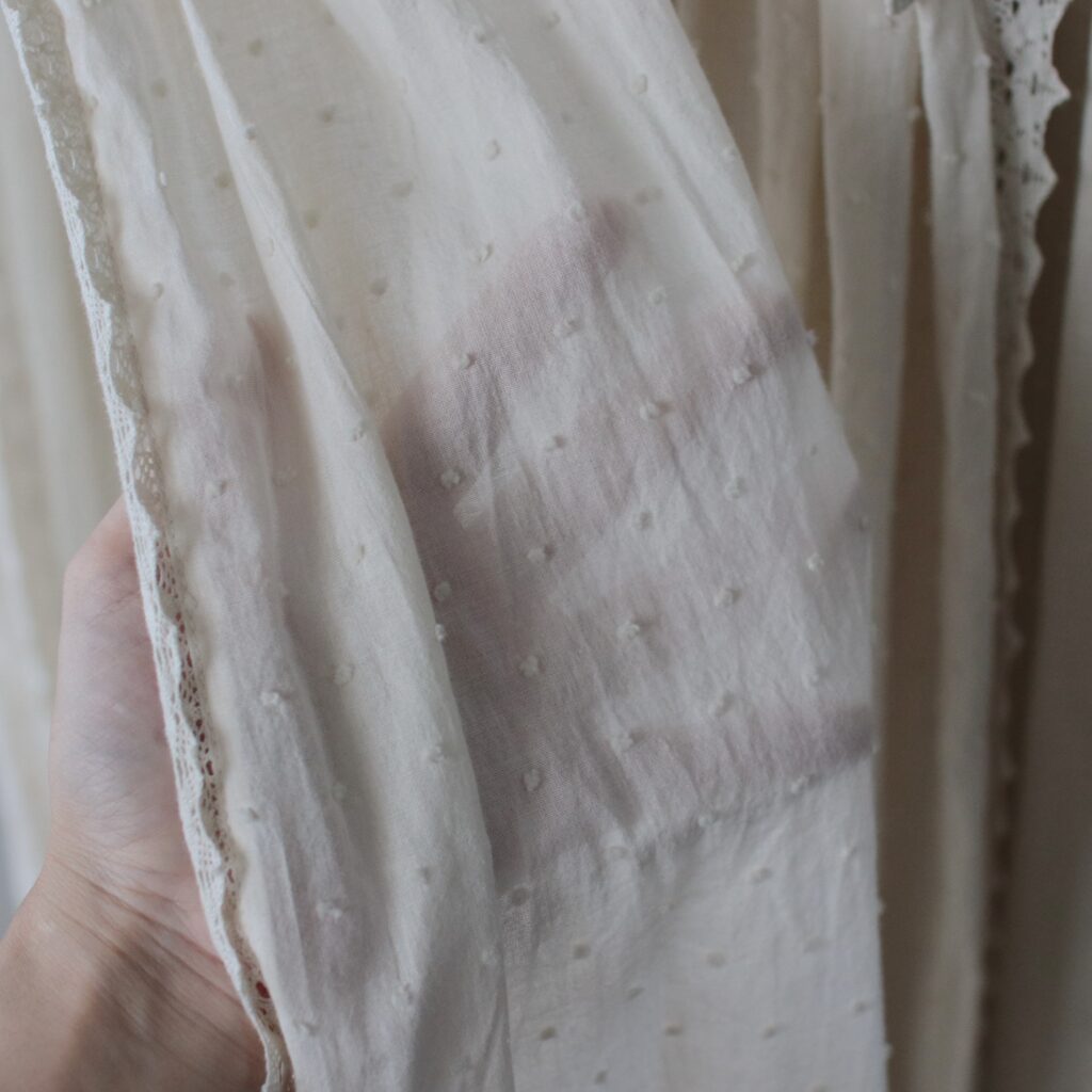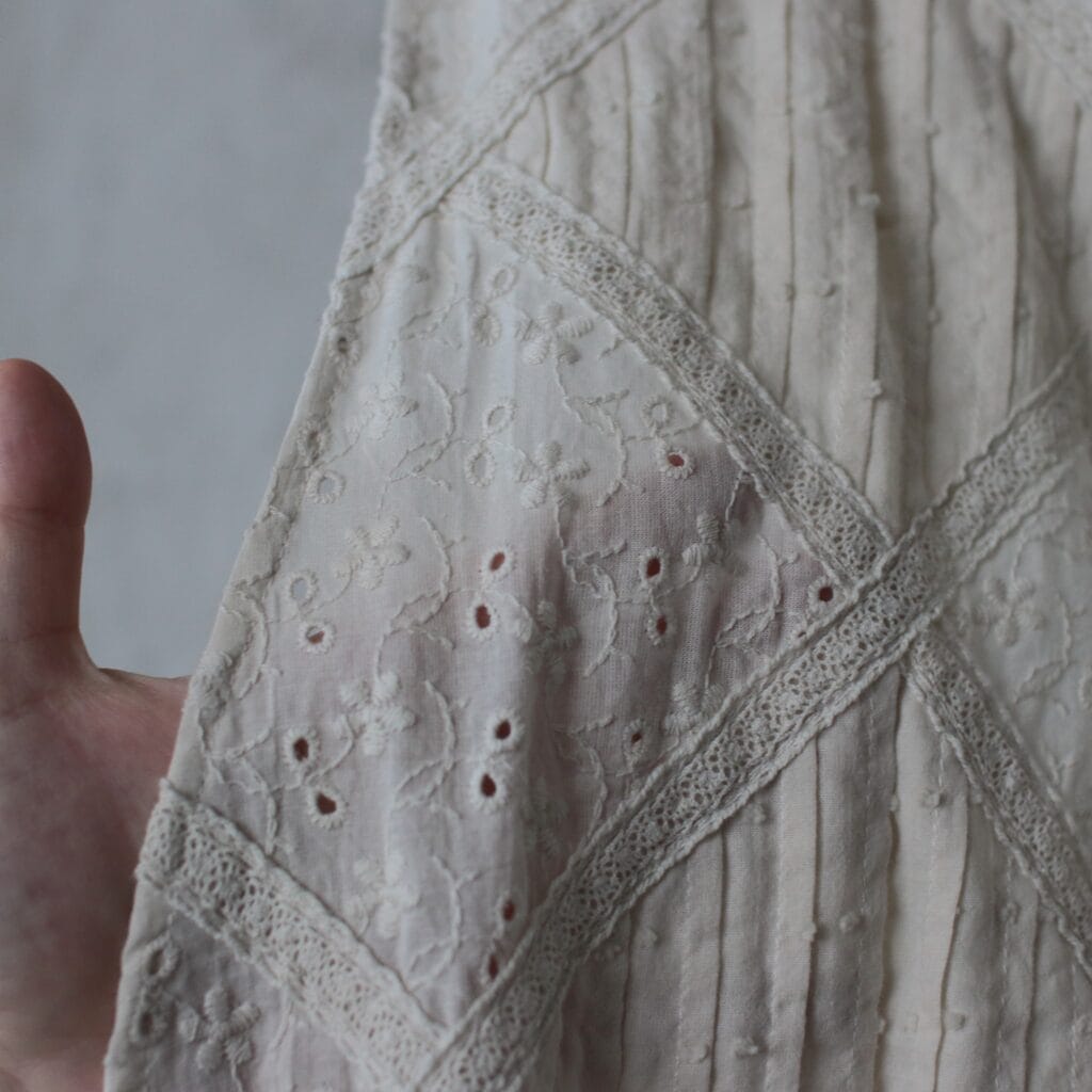 生地とレースをはぎ合わせて作られていて、幾何学模様のような切り替えがポイント。