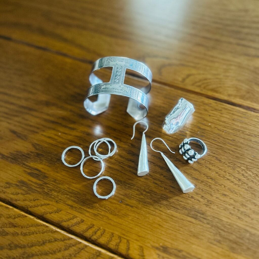 洋服がシンプルなので、シルバーのアクセサリーを足すことが多いです。
