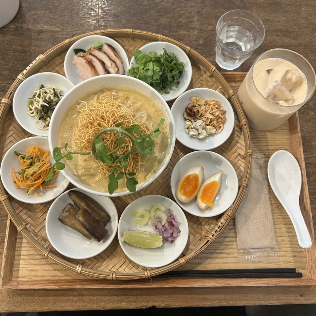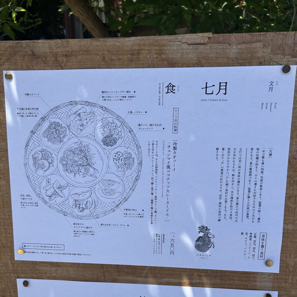 CASICA TABLEは7月にリニューアルされたばかりなのだそうです。「おいしく整える」をテーマに薬膳、アーユルヴェーダ、中医学などの要素を取り入れたメニューがいただけます。この日は、7月のメニュー「冷製カオソーイ チェンマイ風ココナッツカレーヌードル」と和漢アイスチャイをいただきました。まず、見た目が映え〜!とっても元気が出ます。真ん中のヌードルには、揚げ麺(上)と茹で麺(下)の両方が入っていて驚きました…!様々なトッピングを入れていただきます。カレー店に行くと辛さ0を頼む私にはややスパイシーに感じましたが、喝を入れてもらえるような一品。アイスチャイと一緒に、美味しくいただきました。