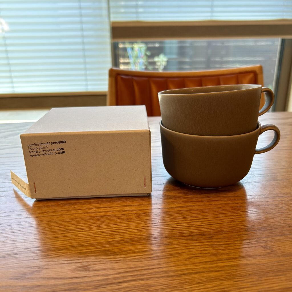 そして、SNSで見て気になっていたCASICA別注のイイホシユミコさんのマグを購入しました。CASICA TABLEのリニューアルに合わせて別注したというマグのカラーはコーヒー、ミルクティー、チャイに合うあたたかみのある深い色合い。底にはCASICAとイイホシユミコさんのダブルネームが書かれているのもうれしいです。釉薬の風合いに個体差があるとのことで、いくつか出してもらい2つ選びました。