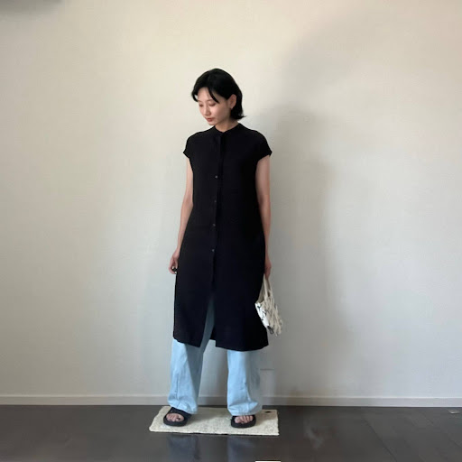 綿素材よりも身体のラインを拾いにくく、下にジーンズを重ね着してもストンとしたラインを作れるのが好きなポイント♪