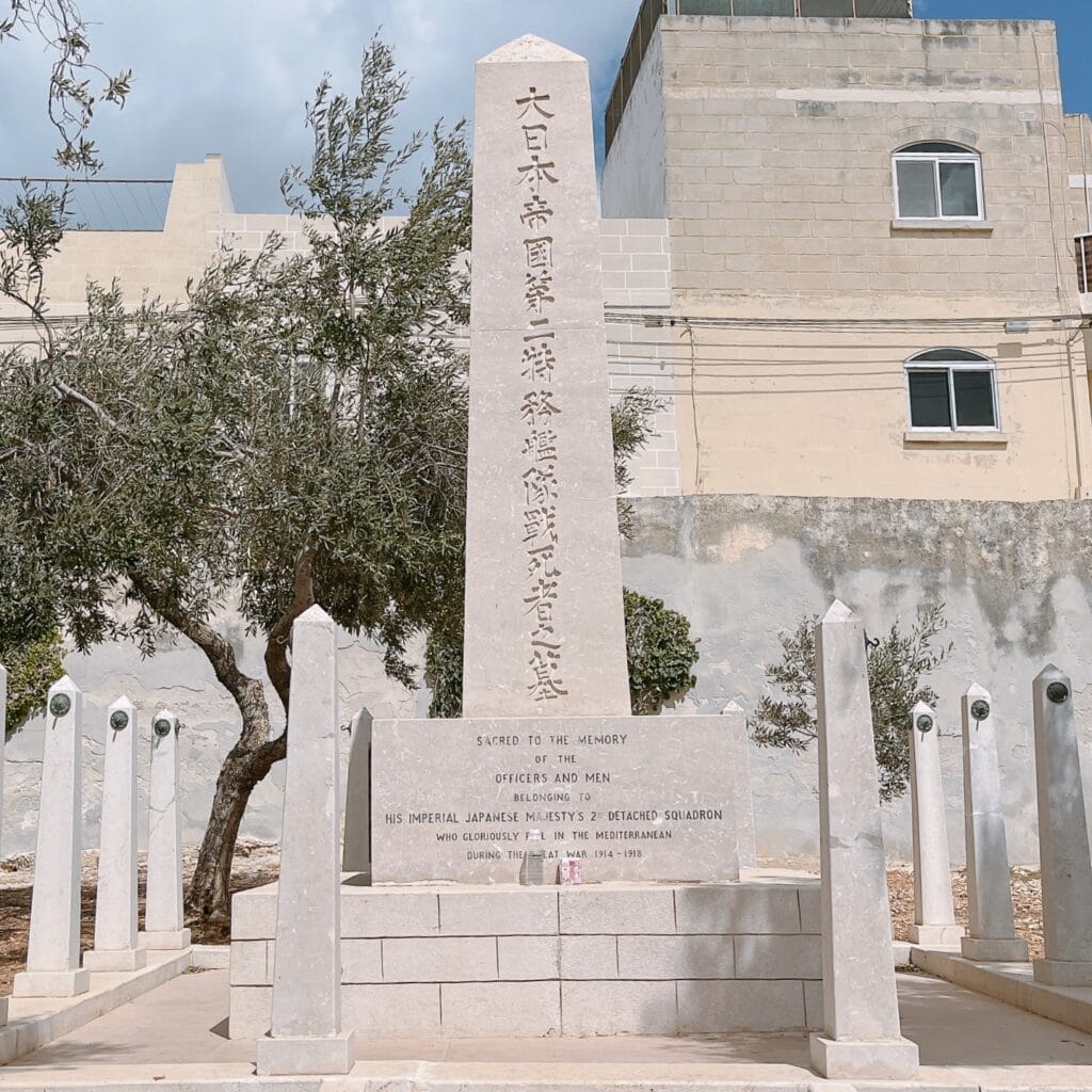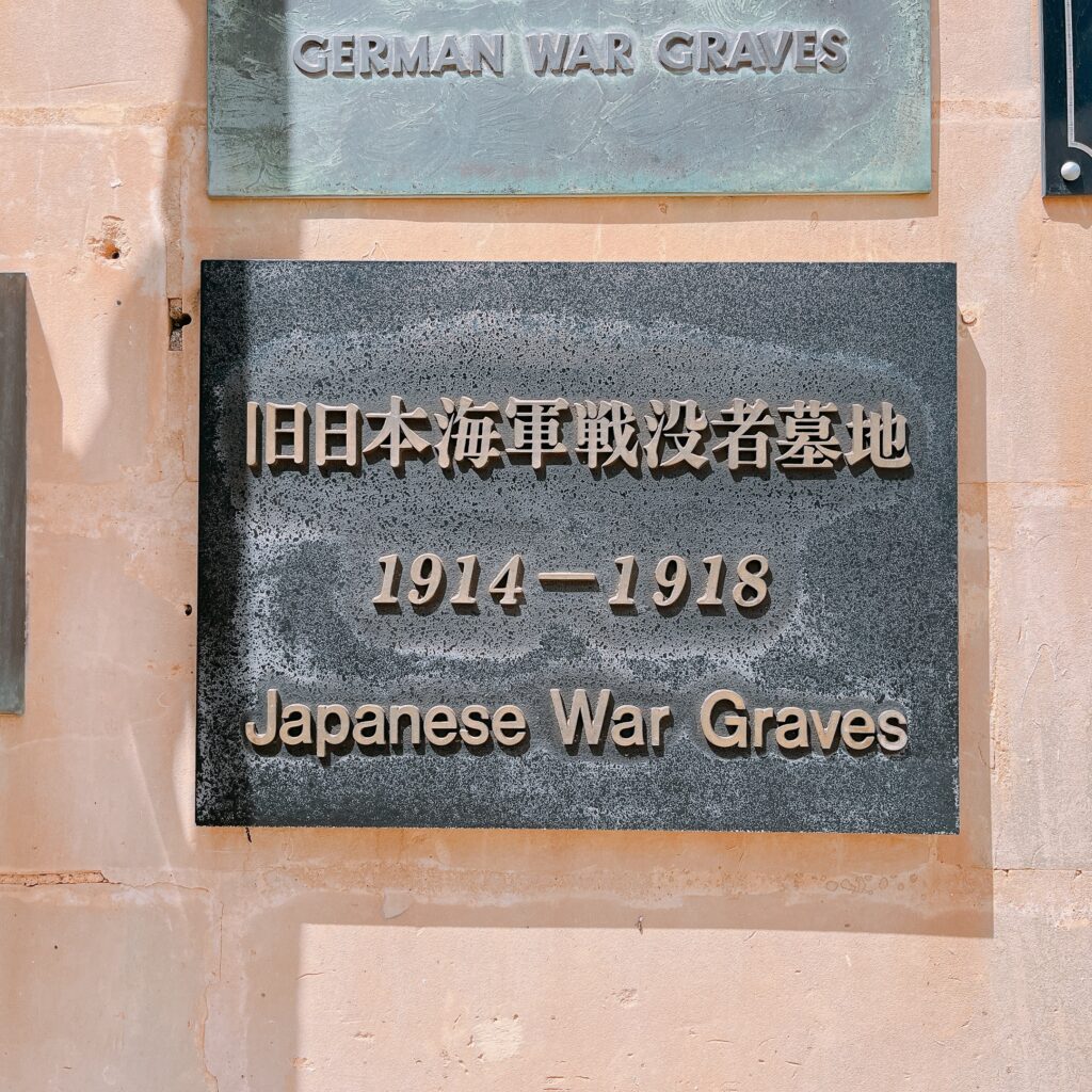 ここにまつられているのは、第一次世界大戦中にマルタ沖で亡くなった旧日本海軍の方々。