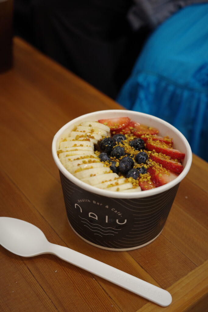 こちらで有名なのがアサイーボウル。多すぎないボリューム具合で、おやつにぴったりのサイズ感もうれしいー! フルーツもりもり、アサイーも濃厚ですごくおいしかったです。