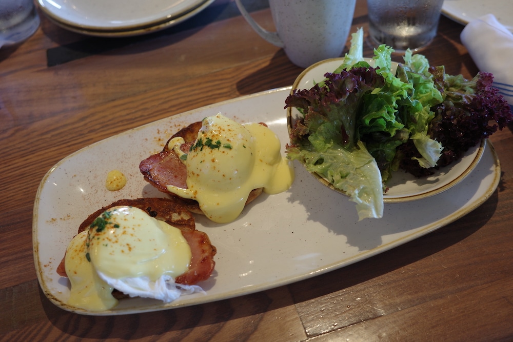 夫が注文したエッグベネディクト(ハワイといえば!)。間違いのないおいしさ!