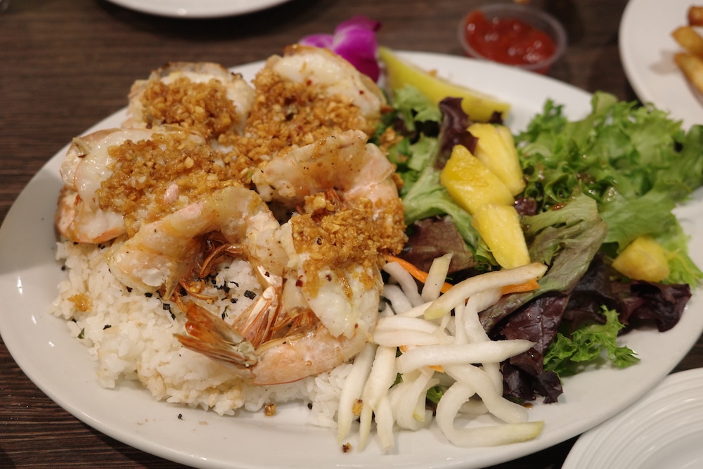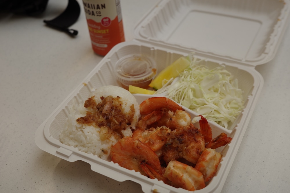 アラモアナセンターで丸1日過ごした日のランチは、1Fのフードコート内にあるフミズのガーリックシュリンプをオーダーしました🦐