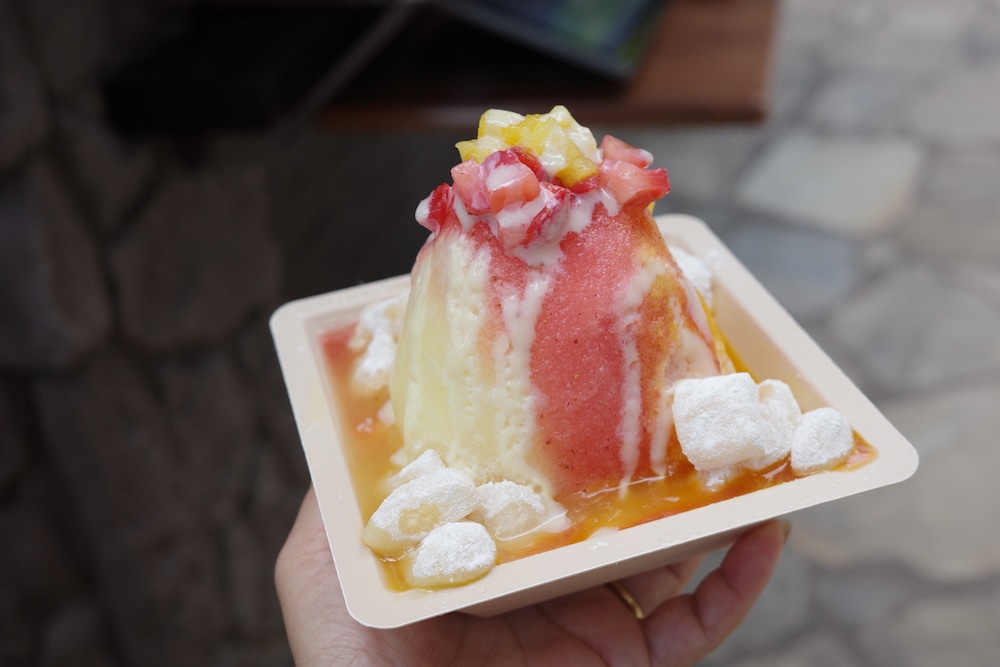 ふわふわできめ細かい氷に、無添加のフルーツソースがたっぷり😍 フルーツと小さなお餅もトッピングされていて、これぞハワイ版かき氷? 噂通りのおいしさで、あっという間に1人でぺろりと平らげました。