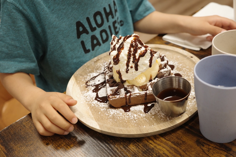 一緒に旅したいとこファミリーが見つけてくれたワッフル&ベリー。こちらも今回の宿泊先(シェラトンワイキキ)から徒歩圏内で、ビルの地下1Fにありました。