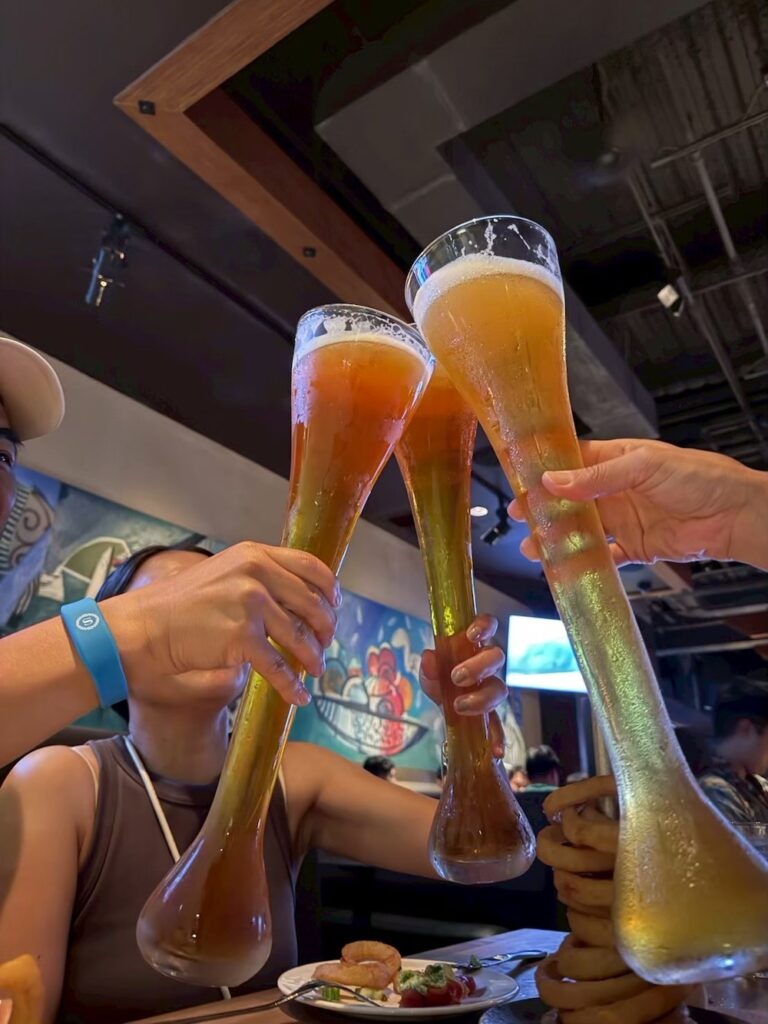 こちらはワイキキにあるカジュアルダイニング、ヤードハウス。見てください、この長ーいグラス!!! ビール好きにはたまらない頼まずにはいられないビジュアル😂