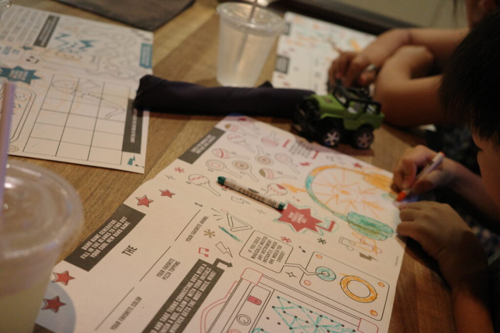 テーブルには塗り絵があり、キッズフレンドリーなお店でした♩