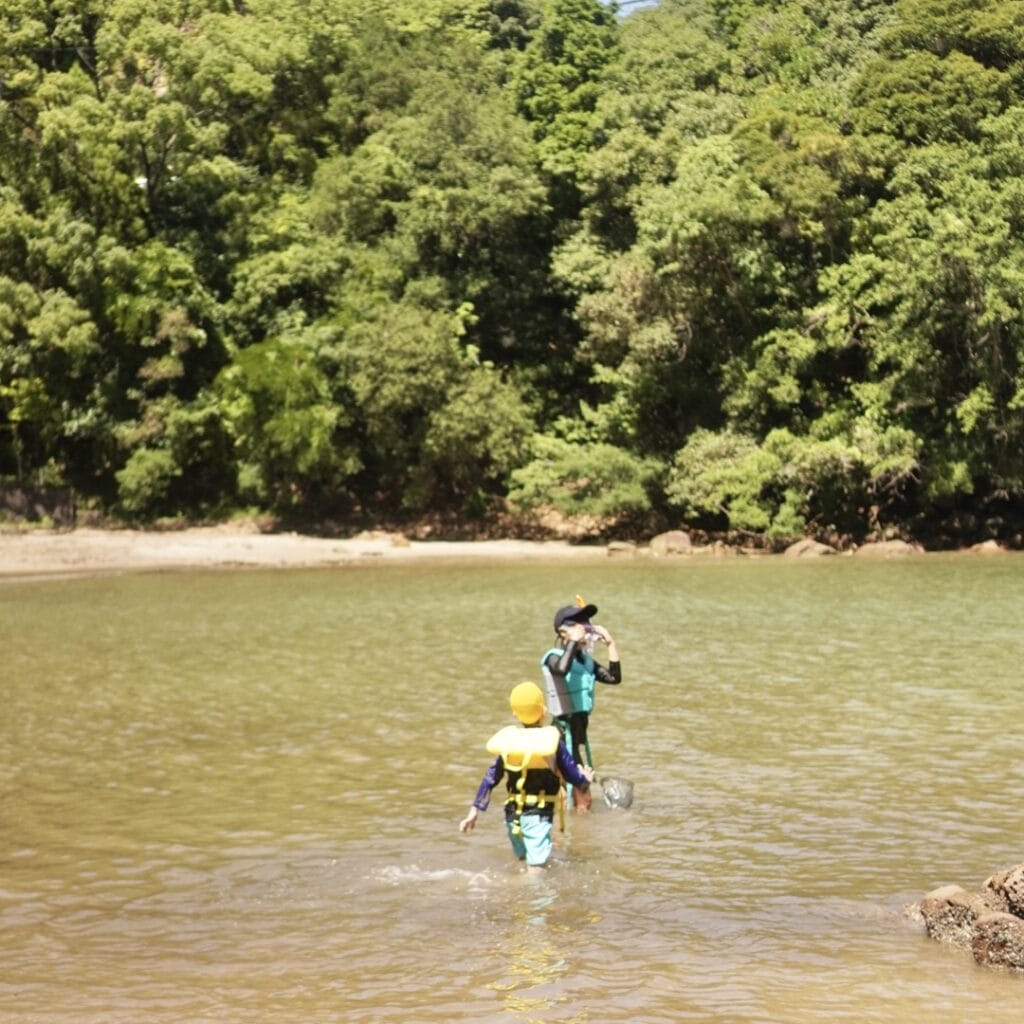 自然の中での遊びはとっても楽しい。ですが、楽しむためにはライフジャケットやウォーターシューズなどの準備も大事。