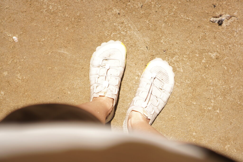 スニーカーのようなデザインなので、水の中以外でも違和感なく過ごせてとっても快適でした。