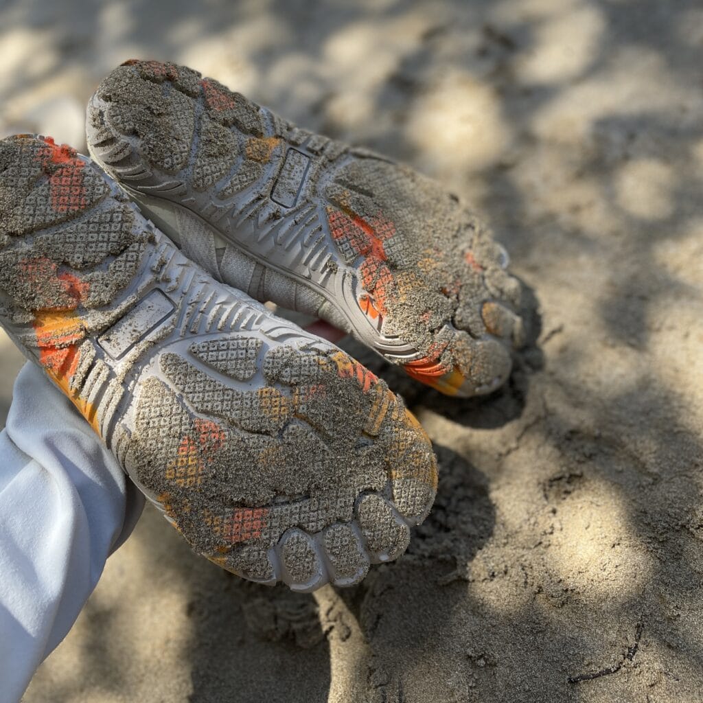 足に馴染んで動きやすく、遊びに集中できます。海の中で泳いでも脱げません〜。