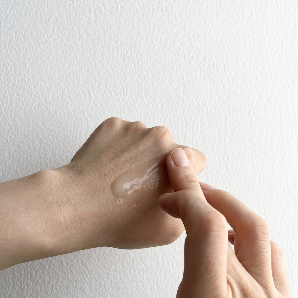 ぷるんとしたゲルで、肌にのせるとすーっと伸びて、すぐになじみます。