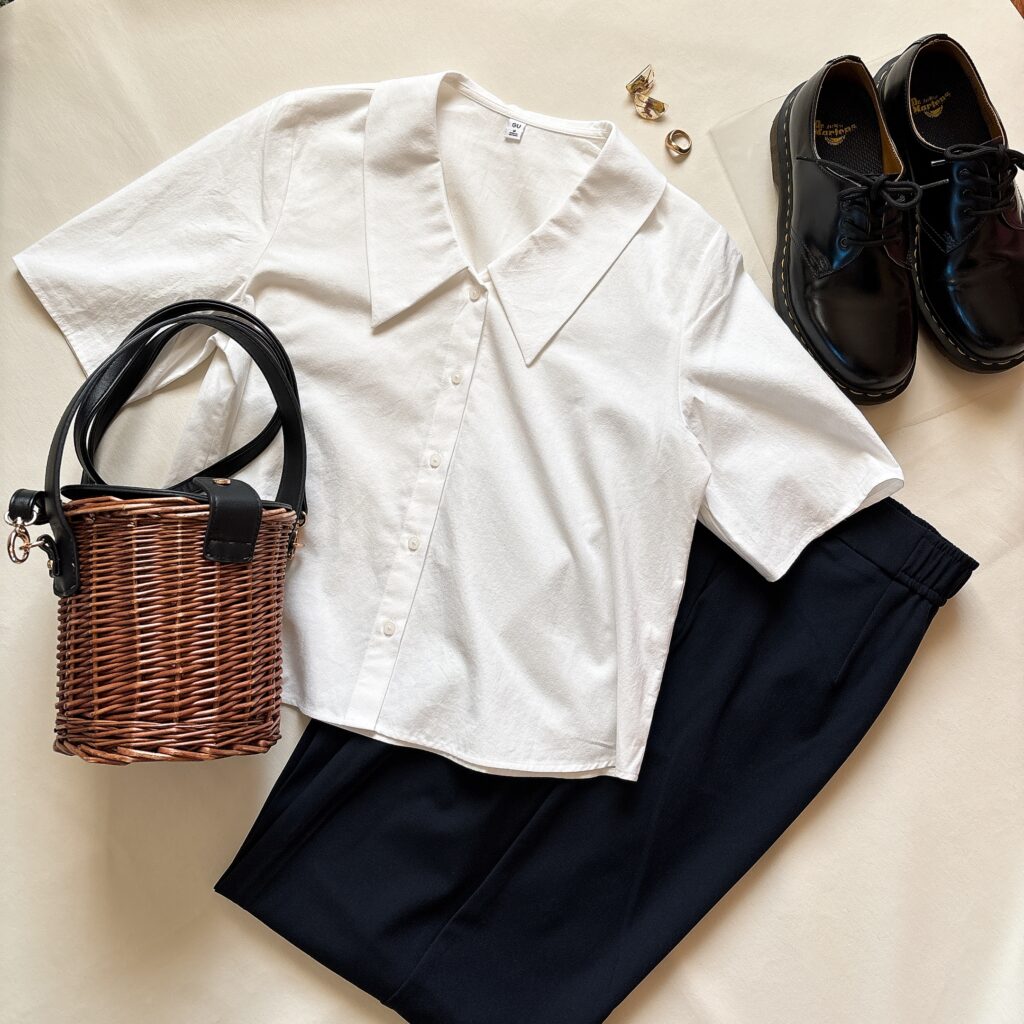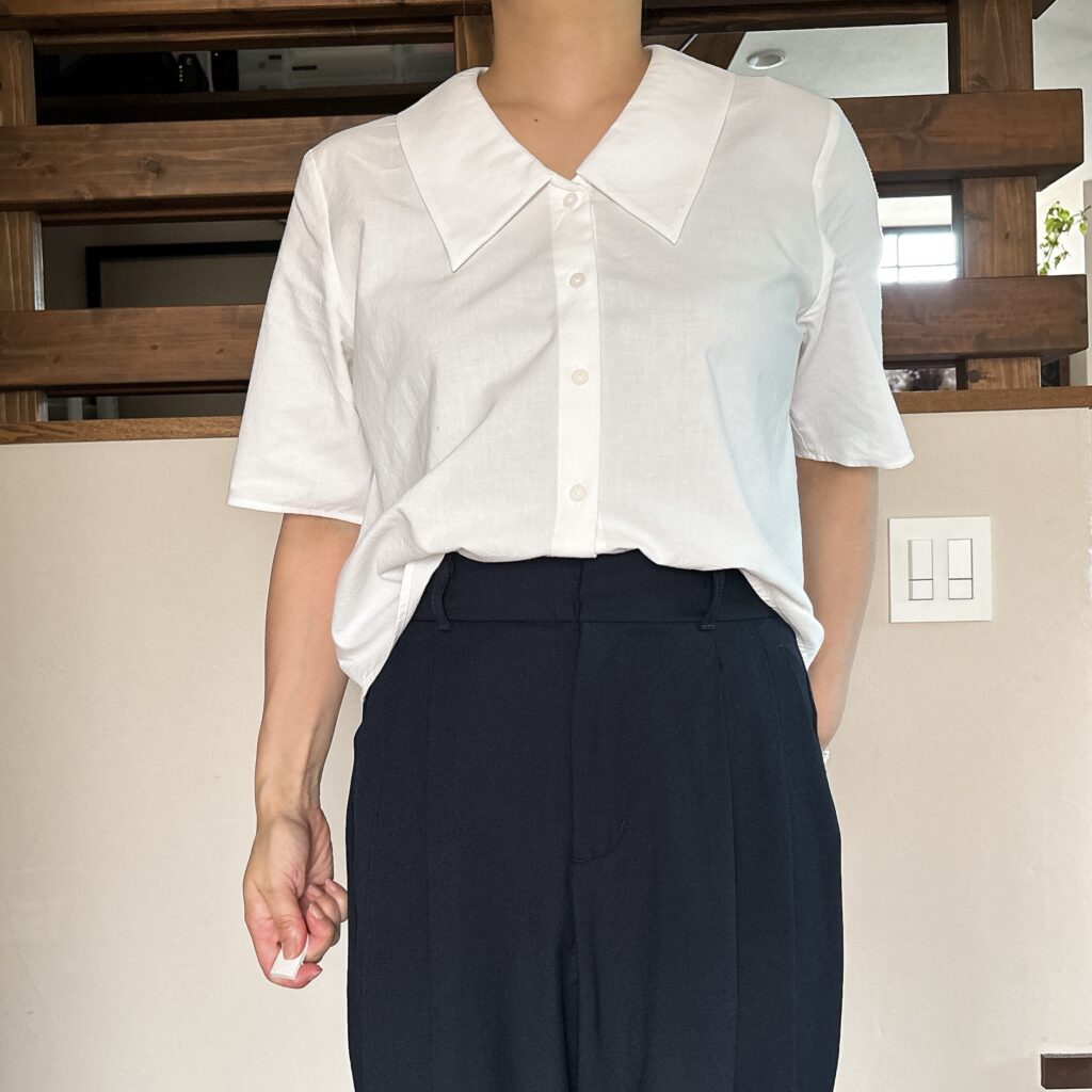 パッと見、普通の半袖シャツに見えると思うんだけど、襟が大きめになっていてそこがおしゃれに見える!