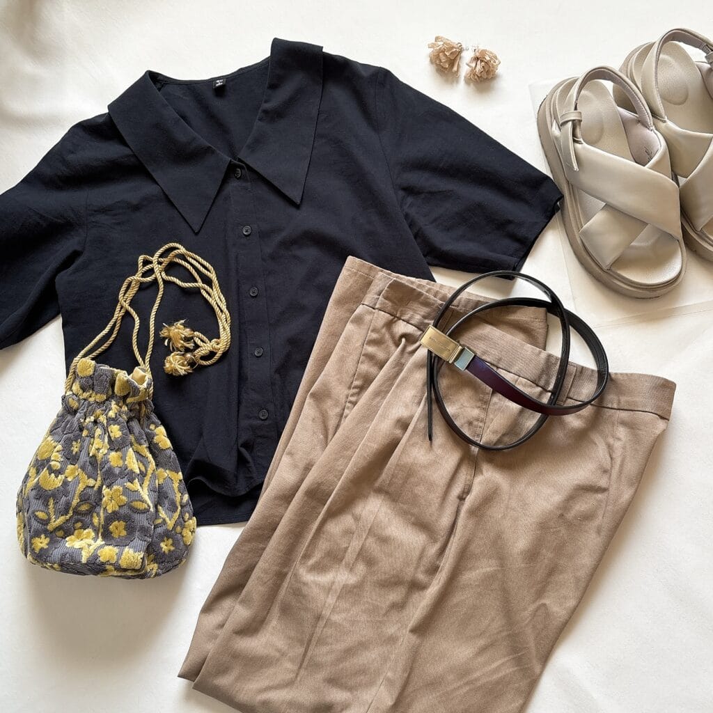 暑くて何も考えずにTシャツみたいにペロンって一枚で着てオシャンに見える服があれば…と思ってたところにGUで出会いました。