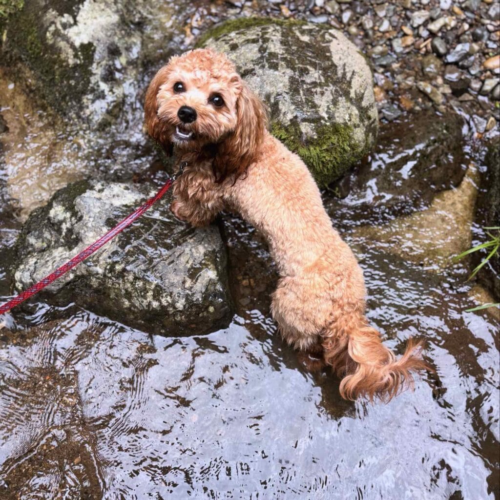 わたしの他に、少しおっきなラブラドールのお友達も遊びにきていたよ。はじめは怖かったけど、どんどん進むパパについていったり、もう楽しいかったなーーー。(その後、ママが私の足を乾かすの、大変そうだったけど、それはそれ)