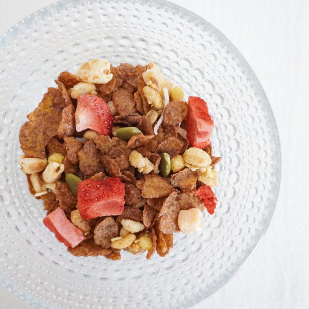 牛乳や豆乳をかけてシンプルにいただくのが美味しい〜。おやつタイムにもパクパク食べられちゃう美味しさ♩