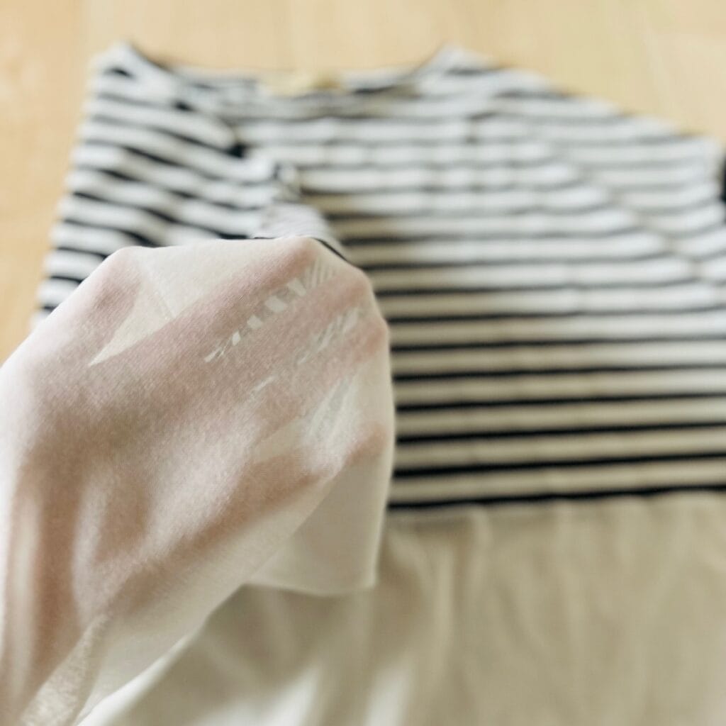 程よい透け感のボーダーで、身体にまとわりつかず風を通すため、とても涼しいです。
