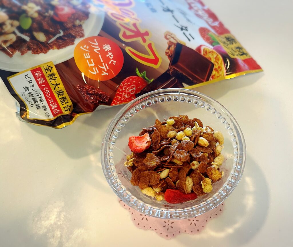 今回は、ケロッグさんの「素材まるごとグラノラ 脂質70%オフ 華やぐフルーティショコラ」をお試しさせて頂くことに。