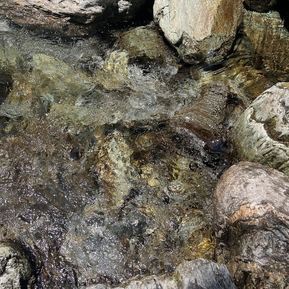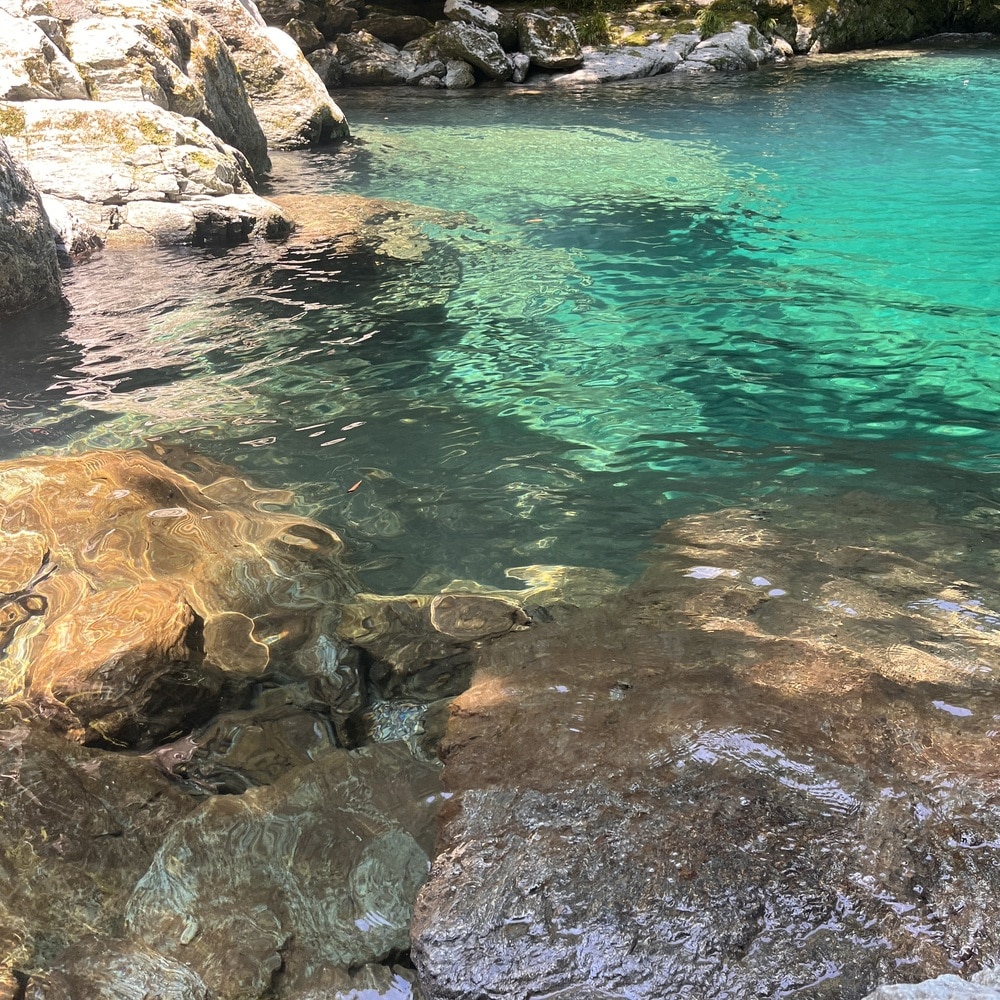 近づくと空気がひんやりして、底の岩まで見えるほどの透明度!