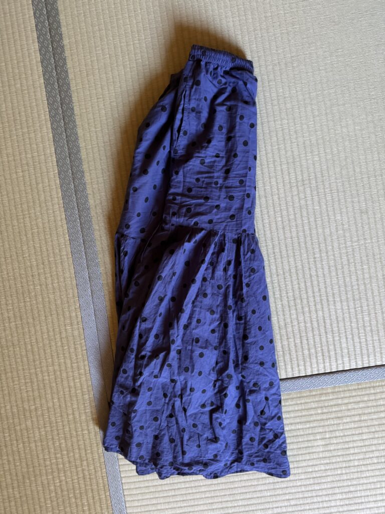 先述の花柄シャツワンピースにはポケットがありません。 スマホがすっぽり安全に入るサイズのポケットがあることがプク旅服の大事な条件。