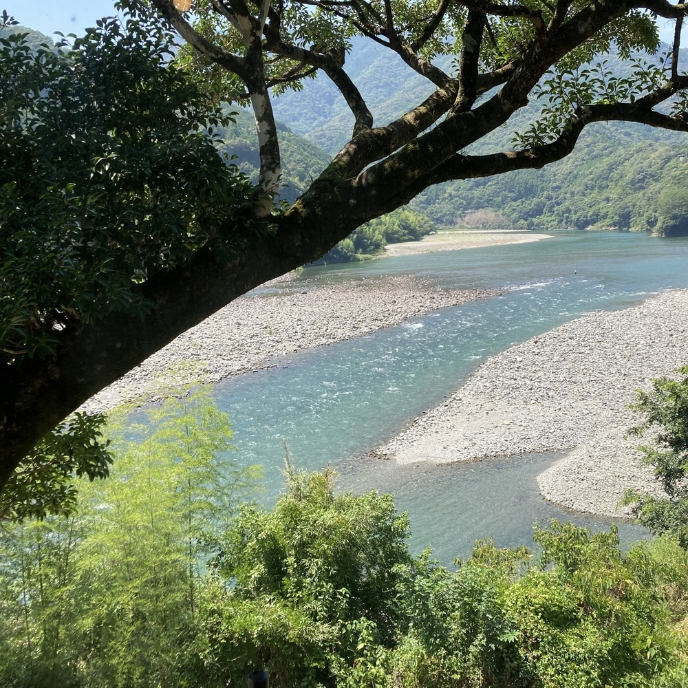 にこ淵へ向かう道沿いにあり、カフェからは仁淀川を眺めることができるんです。