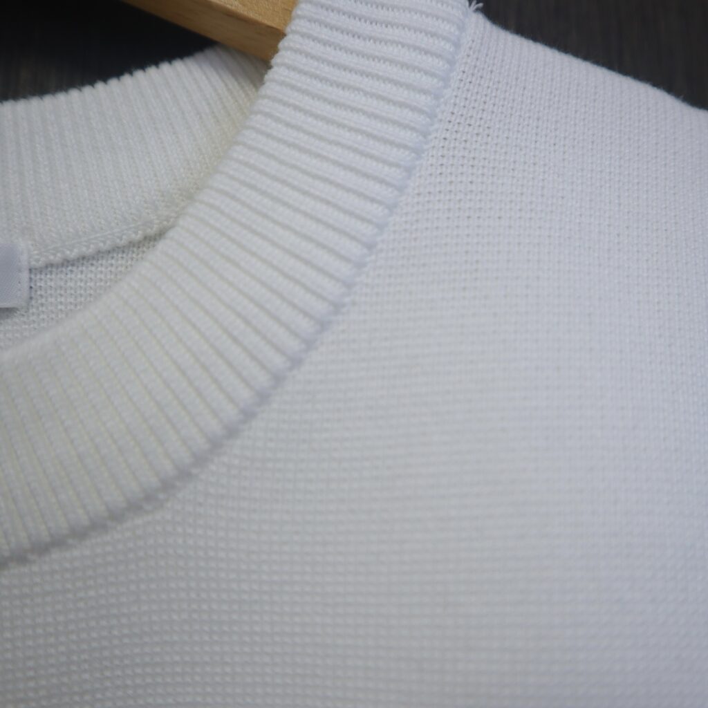 最近購入したUNIQLOのシンプルなデザインの半袖ニット、ウォッシャブルミラノリブセーター。