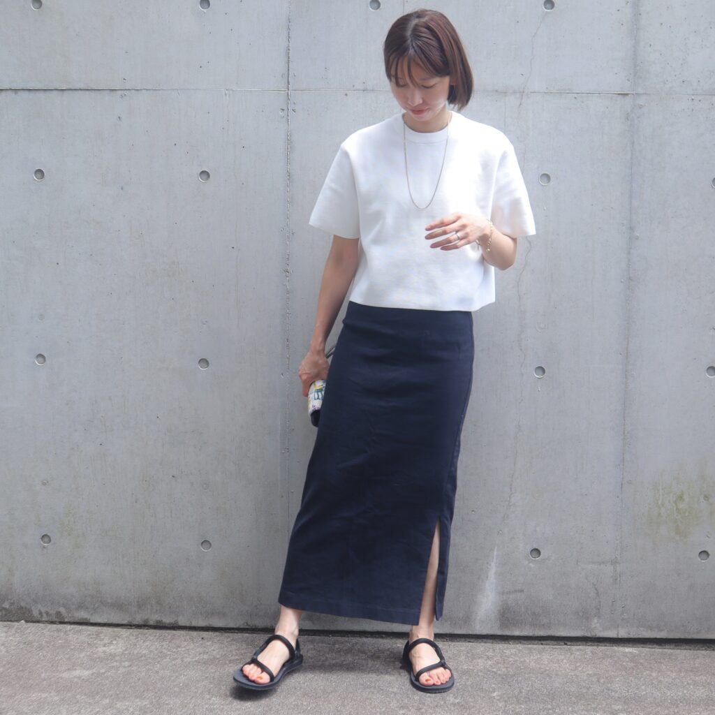 まずはシンプルなタイトスカートに合わせた着こなし。