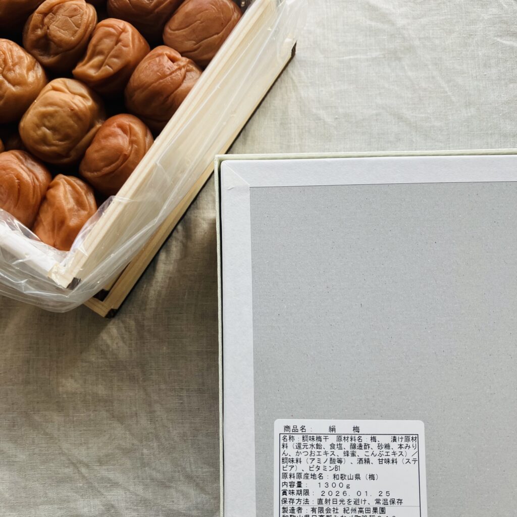 梅、漬け原材料:還元水飴、食塩、醸造酢、砂糖、本みりん、かつおエキス、蜂蜜(アカシア蜂蜜)、こんぶエキス/調味料(アミノ酸等)、酒精、甘味料(ステビア)、ビタミンB1